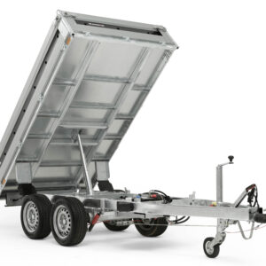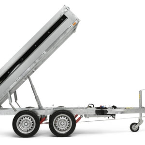En perfekt arbetskamrat för entreprenören och för transport och lastning av sand, ved eller grus. En robust och dubbelaxlad envägstipp. Förstärkt flakskiva i stål med elektrisk hydraulisk tipp för enkel användning. Hög tippvinkel gör släpvagnen smidig för lastning samt transport av grus, trä eller byggmaterial. Fällbara och avtagbara lämsidor, avtagbara hörnstolpar och presenningsknappar som standard. Sex kraftiga invändiga bindöglor integrerade i flakskivan. Utrusta släpvagnen med nätgrind, förhöjningslämmar, kapell eller något annat tillbehör ur det breda sortimentet som är gemensamt med Serie 4000. Vagnen på bilden kan vara extrautrustad.